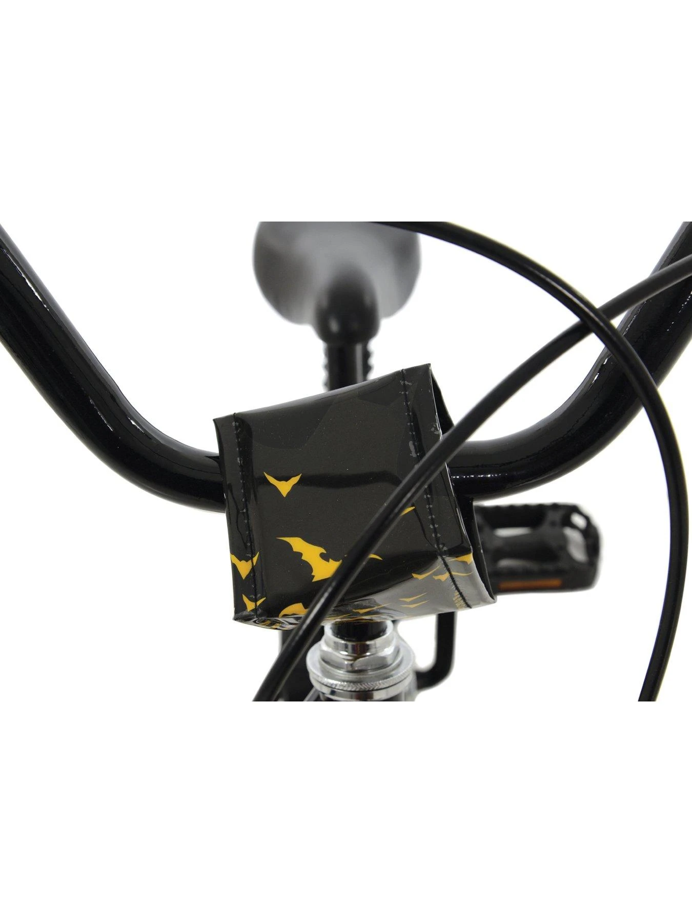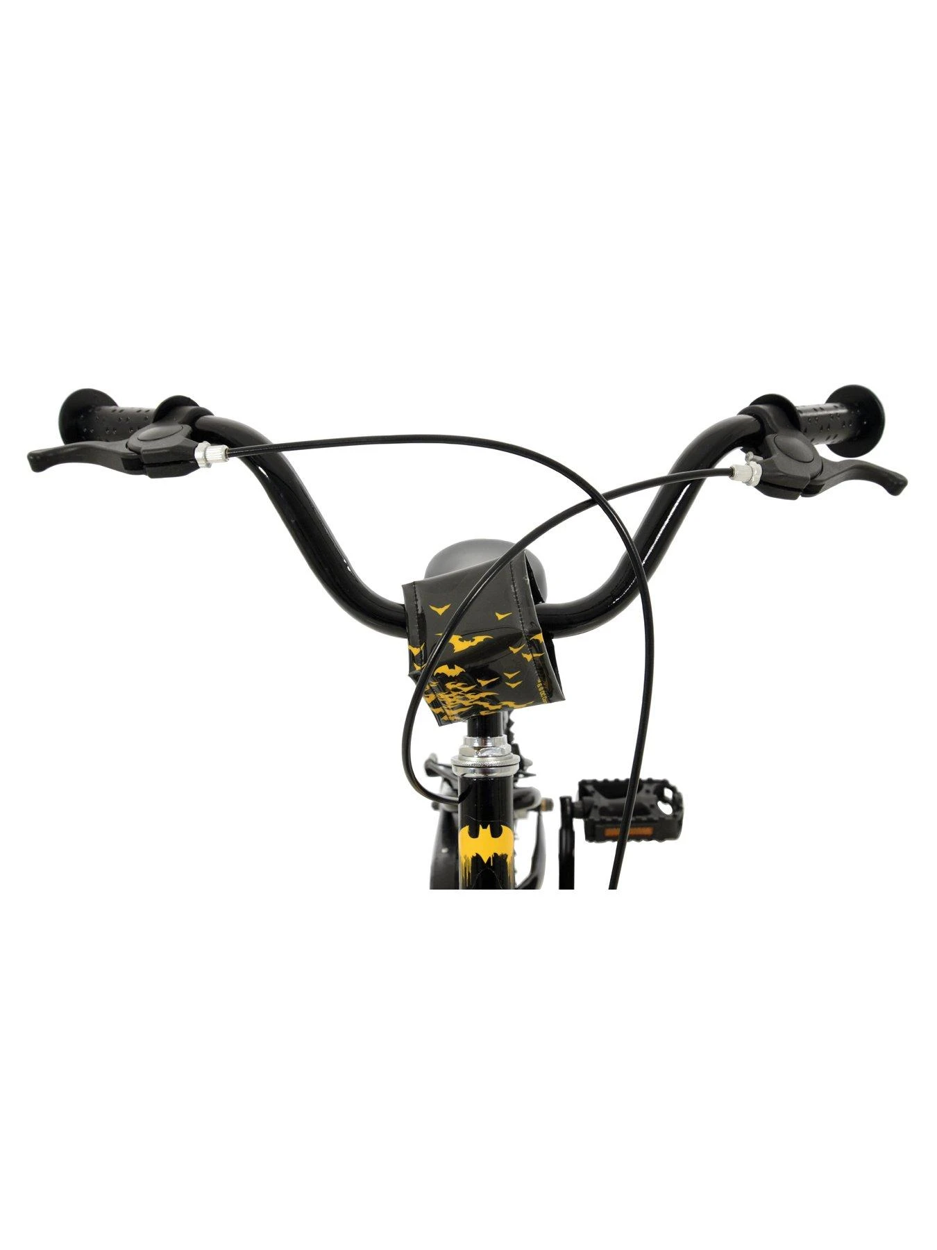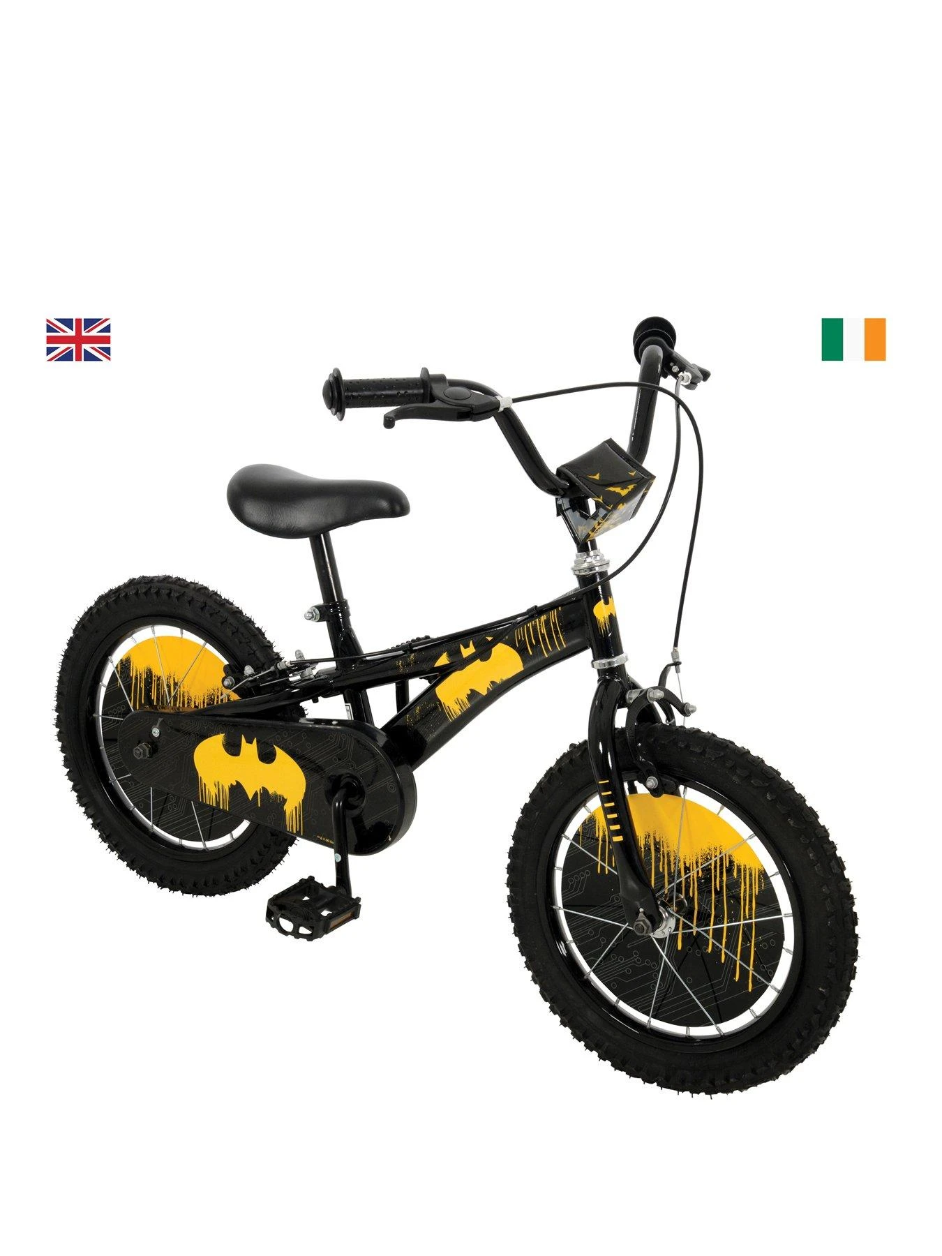 The perfect big bike for any Batman fan, with bold character graphics, the 16″ bike comes complete with iconic handlebar crash pad, wheel discs, fully printed chainguard and durable steel frame. The 16″ spoked wheels with pneumatic tyres provide extra stability and the deep tread tyres offer a strong yet comfortable ride with excellent grip. Both saddle and handlebars are adjustable in height to suit children as they grow and gain in confidence and a soft saddle and hand grips provide additional comfort whilst learning. With safety in mind, the character printed chainguard is fully enclosed while the front and rear caliper brakes provide efficient stopping. Iconic wheel discs and handlebar crash pad are the absolute must-haves for any Batman fan. To the rescue!