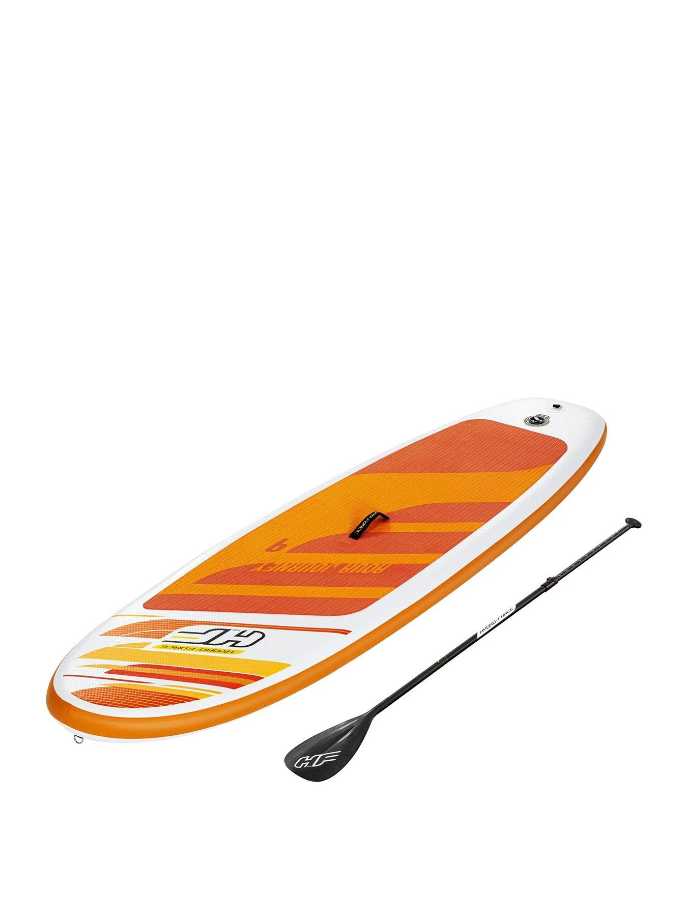 At 9-foot long, The Bestway HF Aqua Journey SUP has been designed to offer optimum strength, stability and control for when you are out on the water. This premium quality board is 12cm thick and made from renowned TriTechTM material, coupled with the extremely rigid Drop StichTM Material.Â