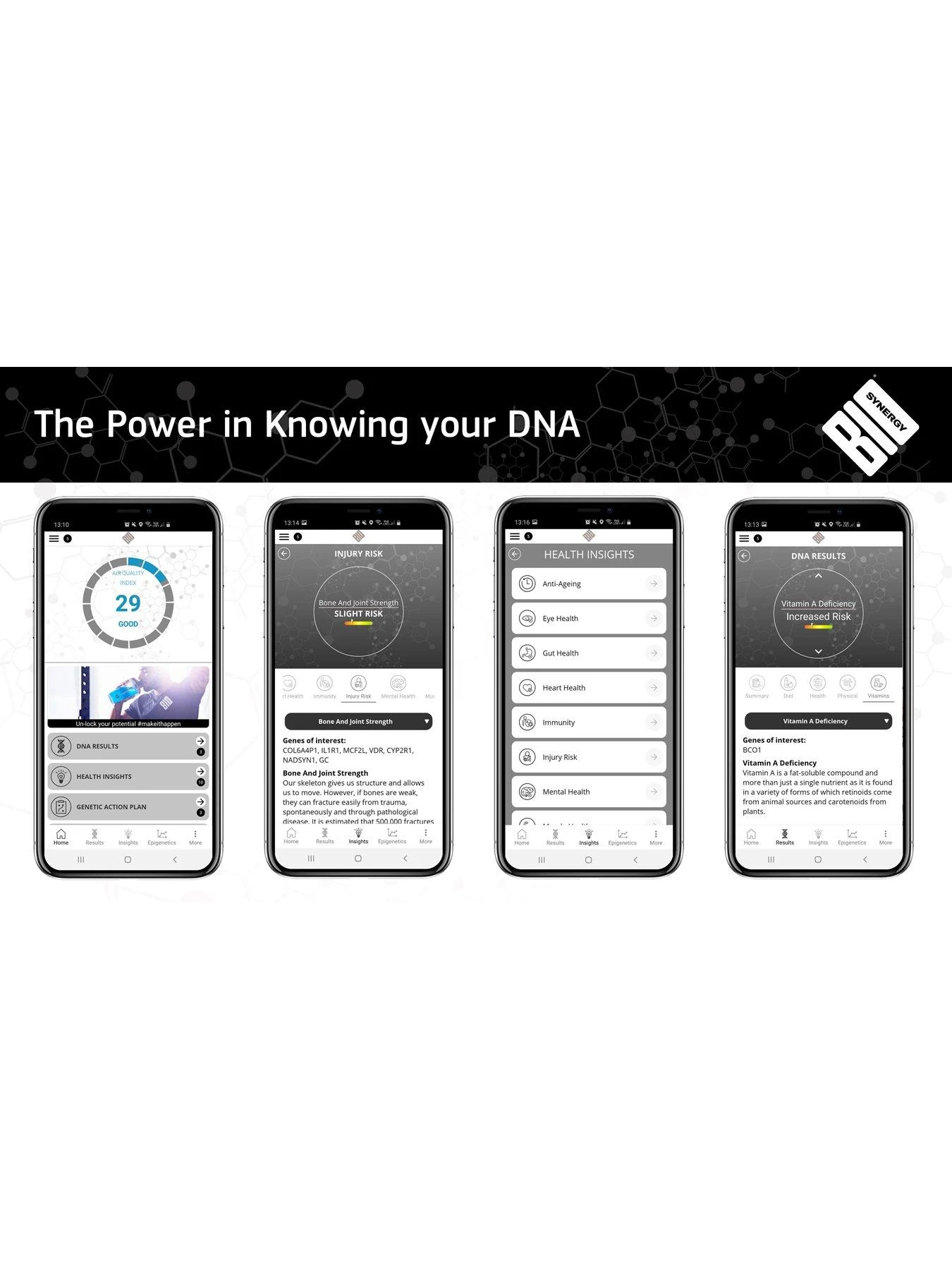 Bio Synergy DNA Test – unlock the secrets of your own health and get unrivaled, insight into your diet, nutrition, fitness, and overall wellbeing.