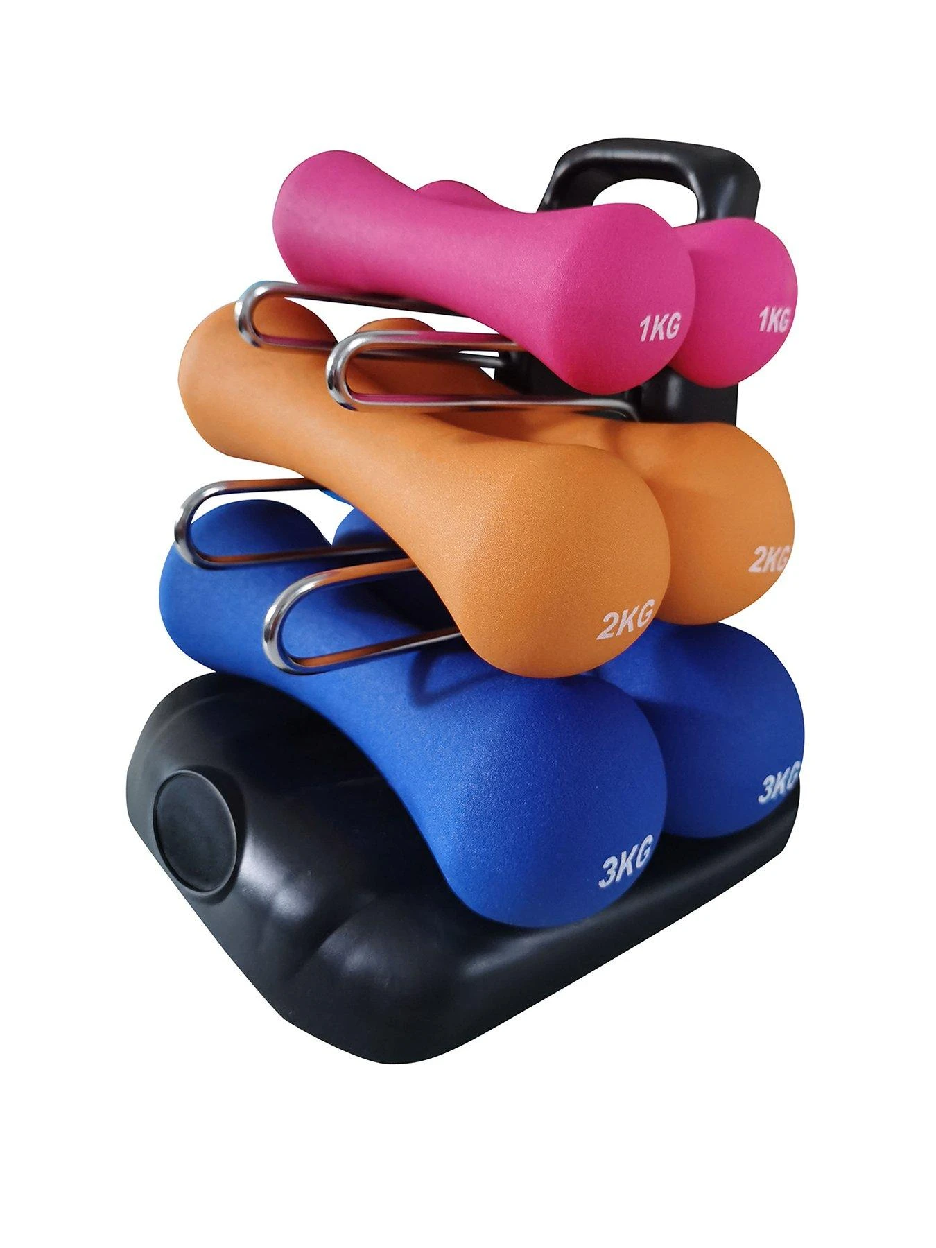 This set includes everything you need in one easy-to-use, space saving set. You can enjoy a variety of colour-coded weights from 1kg, all the way to 3kg, making this the perfect set for those who are new to weight training. The stand not only looks great, but is a space-saving way to enjoy a variety of weights, without losing floor space.