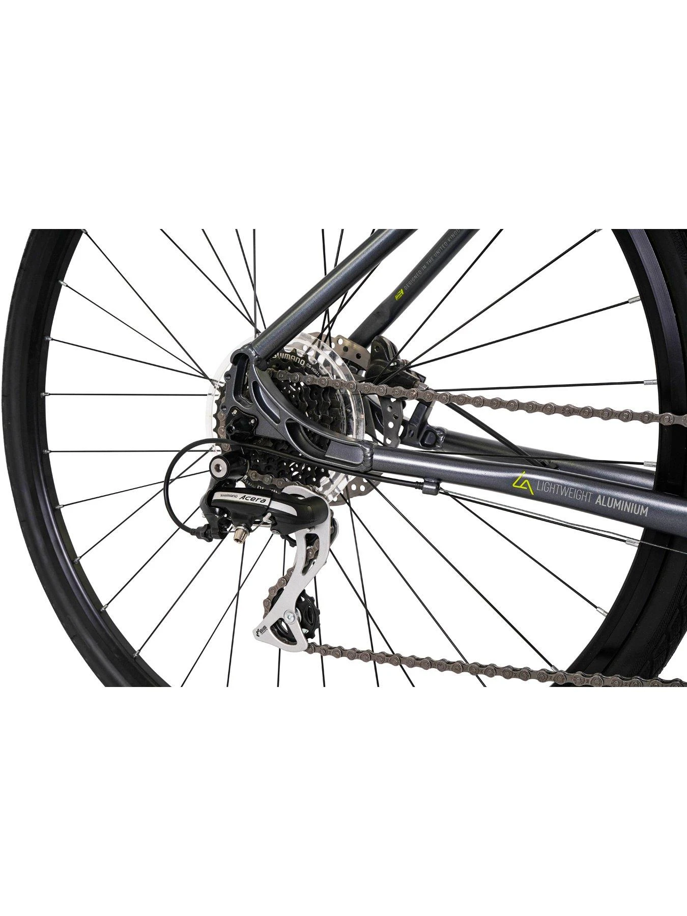 Topping the Explorer range is our 4.0; Shimano 24 speed EZ-Fire Plus transmission offers all the gear ratios you need, no matter the terrain, and coming to a stop is reassuringly powerful and controlled thanks to the Shimano hydraulic disc brakes. Gear derailleurs have been upgraded compared to the 3.0 as well as the double wall rims being fitted with puncture resistant Schwalbe Road Cruiser tyres.