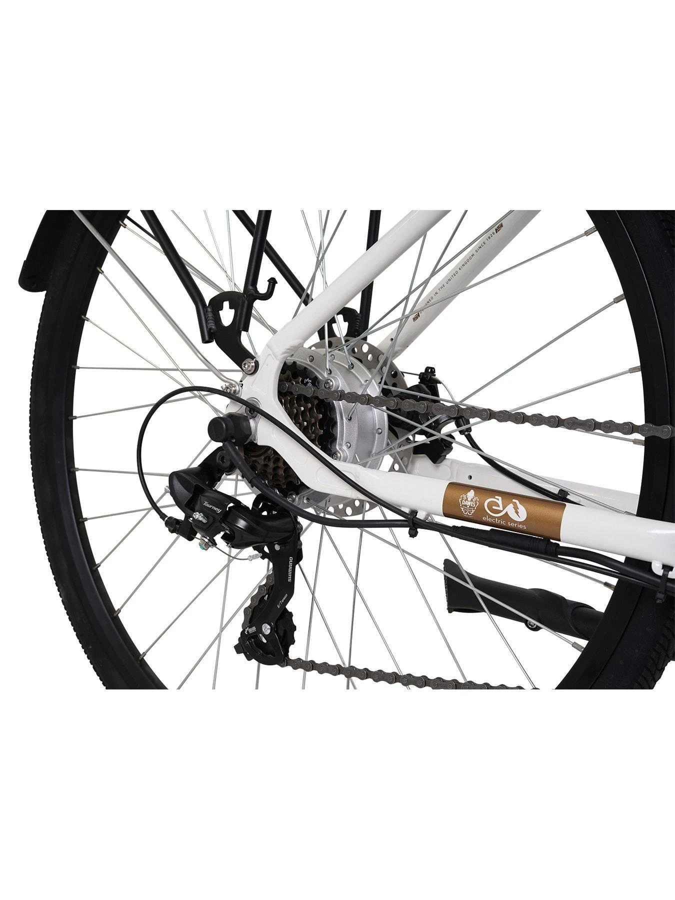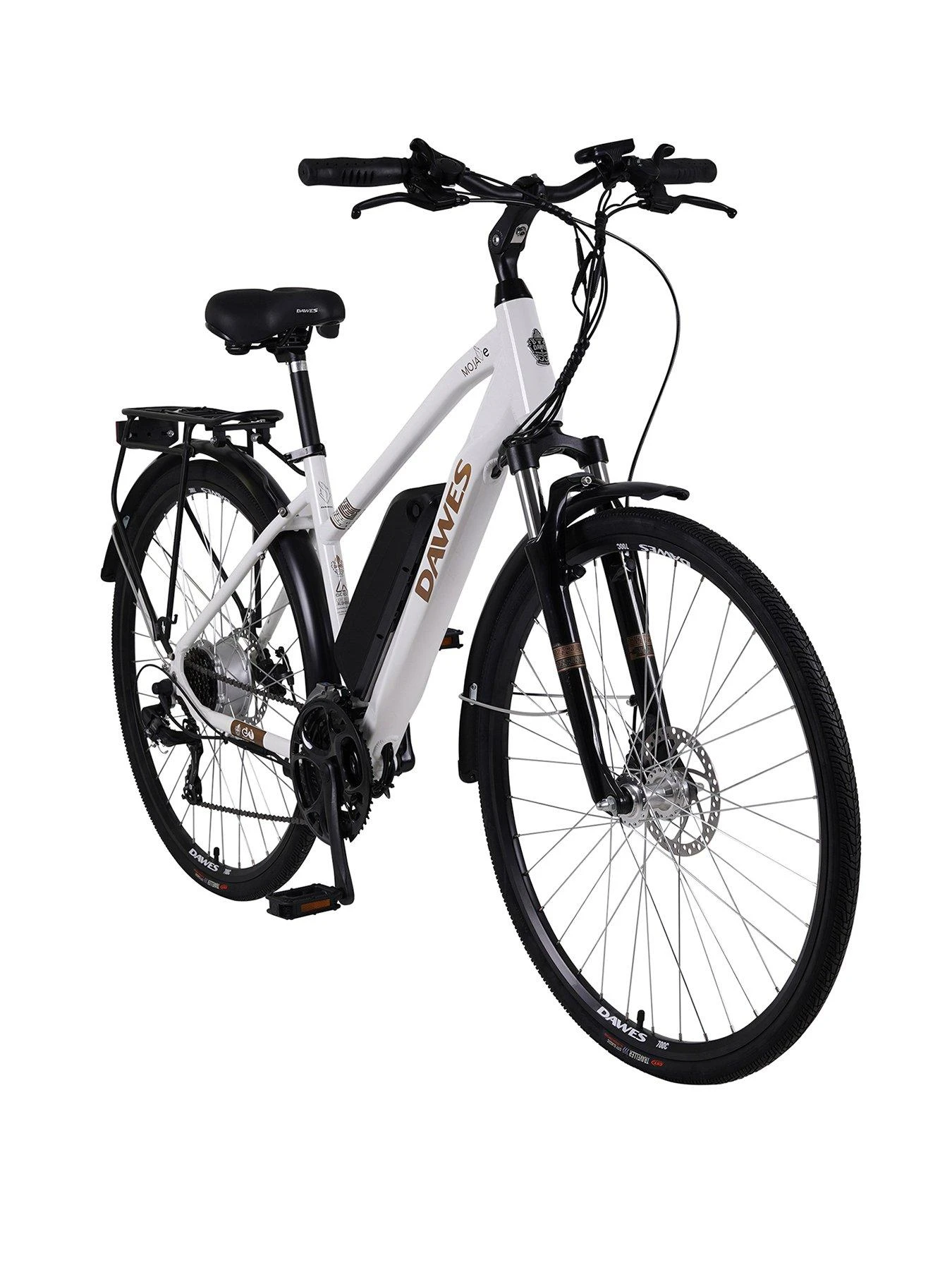 The Dawes Mojave has long been one of the most popular models in our standard trekking range. So with the boom in electric bikes, we thought what better model to electrify! Built around a unisex frame design we hope this one bike will cater for a wide variety of cyclists. Couple that with accessories which come as standard including full length mudguards, rear carrier and big-foot propstand and the all new Dawes Mojav-E really is a jack of all trades. Ideal for commuting to work, carry your things on the back, or just going for a spin in the countryside with a picnic, this 250W electric bike takes the brunt of the work so you can either ride much further than normal, or make that quick journey without arriving all sweaty. The 36V 10Ah battery neatly connects to the downtube, keeping it out of the way, and it can easily be disconnected by key if you’d rather charge it up inside your home. The 250W rear hub motor smoothly assists you up to 25kph and offers a range of approx 45km per charge. We’ve also fitted easy to use, reliable Shimano 21spd gears and powerful mechanical disc brakes to help bring you to a stop.
