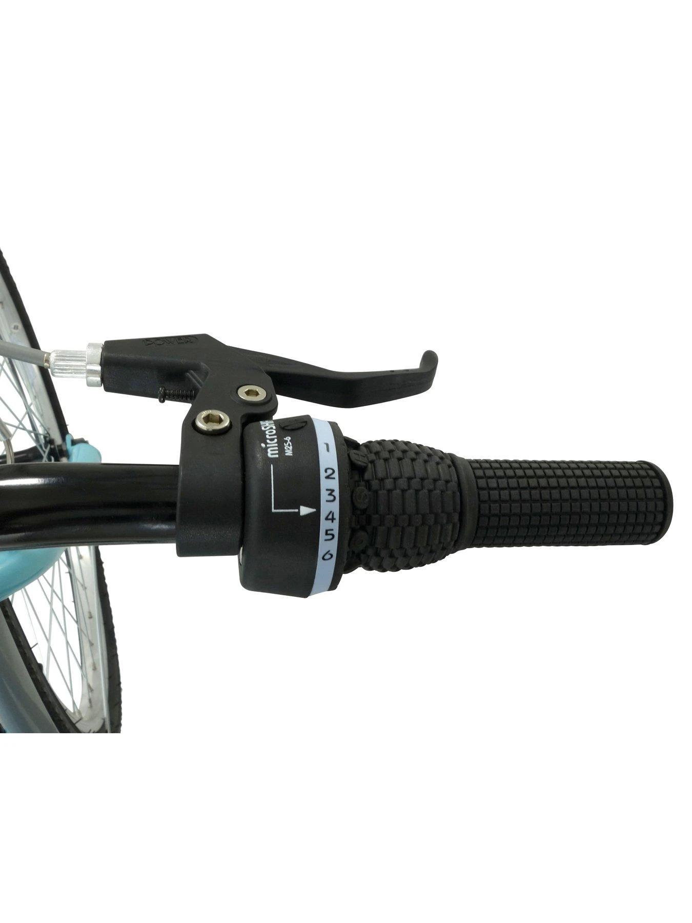 - Shimano 6-speed gearing with micro-shift rotational gear shifter for a simple, 1-handed gear change
