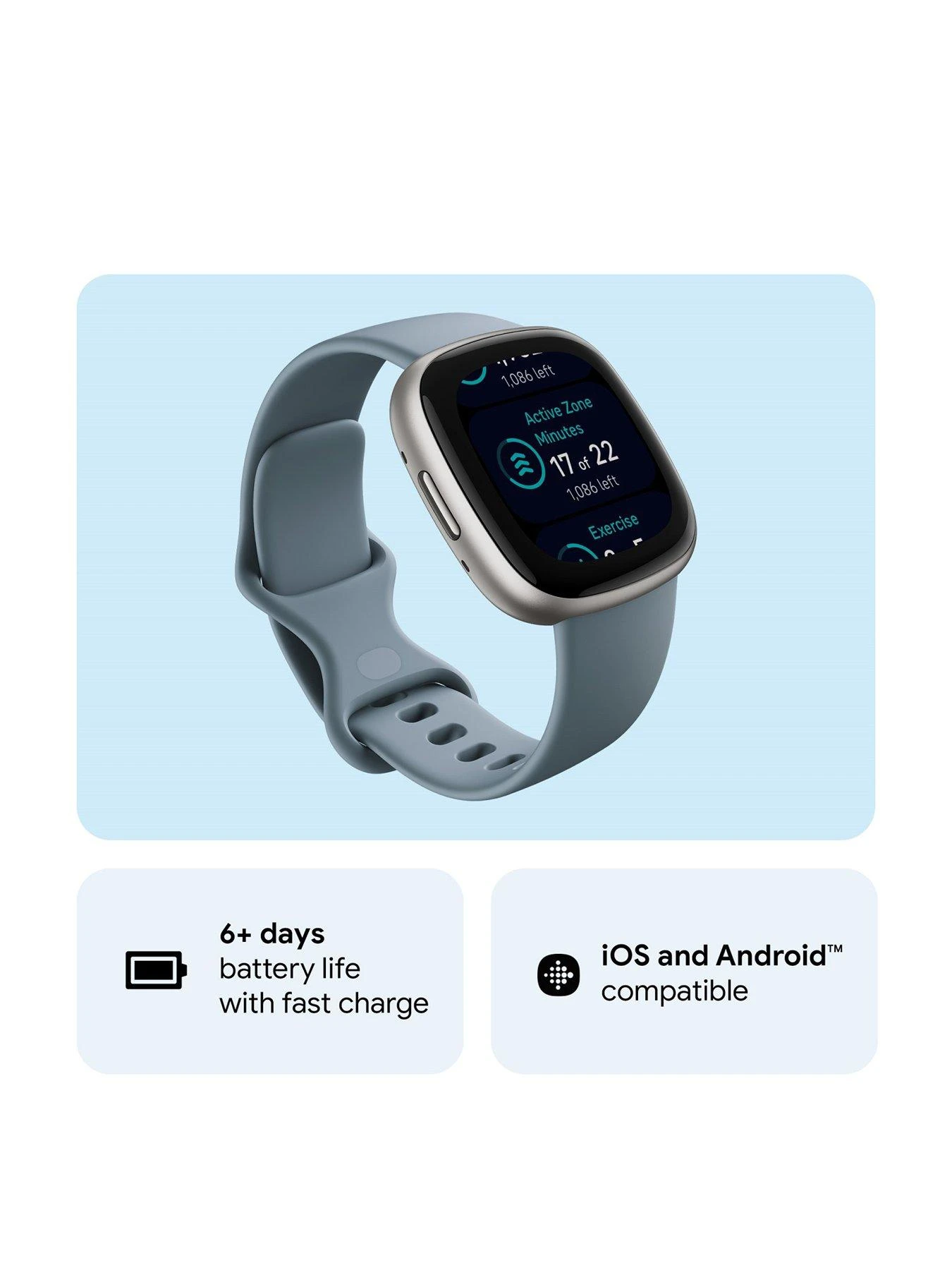 Never miss a beat with calls, texts and notifications right on your wrist. With built-in GPS and a battery life of 6+ days, the Versa 4 is compatible with Android and iOS. All of this from a thin, lightweight fitness smartwatch that’s designed for comfort during workouts, sleep and more.