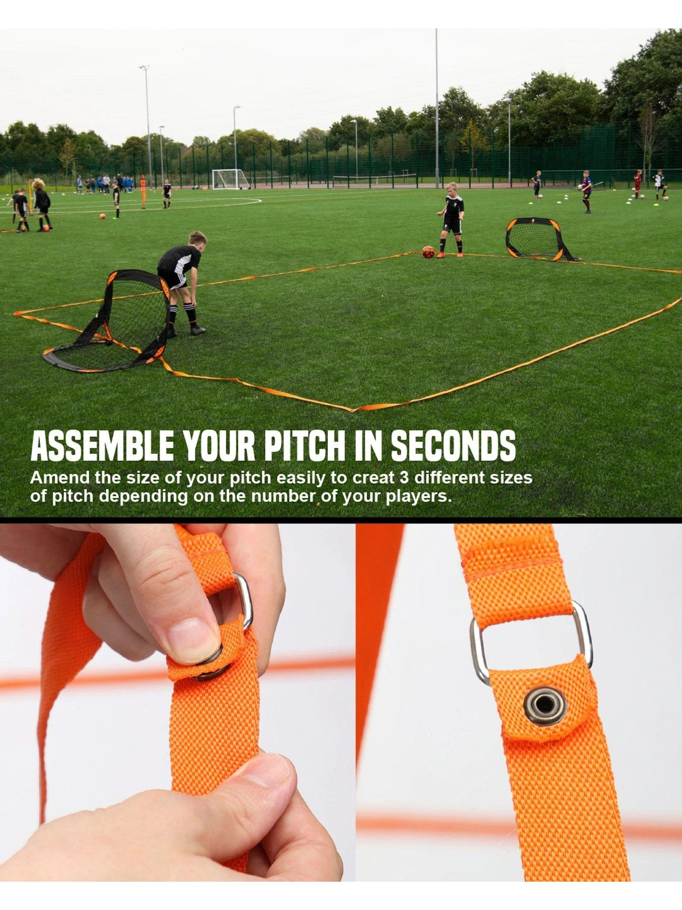 This fantastic set is great for challenging and playing with friends, teammates and family. Quickly set up your pitch for hours of fun and different sized games and challenges.