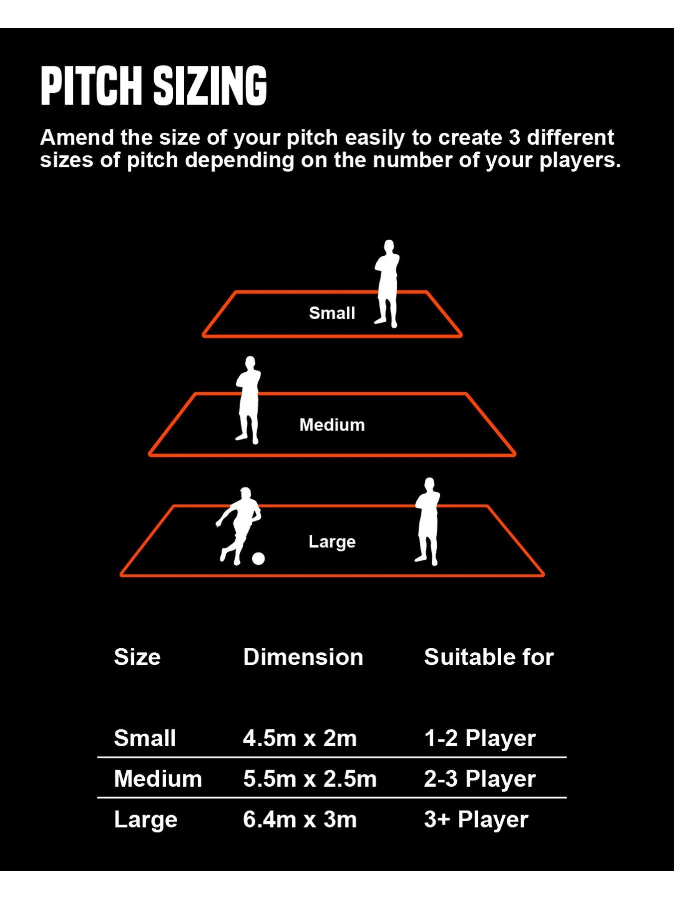 - Adjust the pitch size for 1v1, 2v2, 3v3