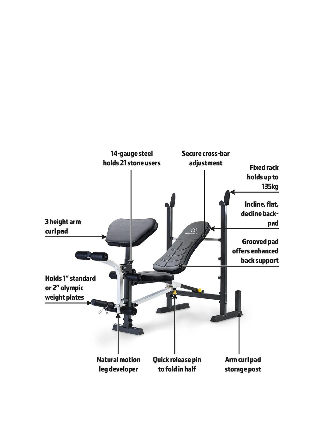 There’s plenty of room to up your weights thanks to a total capacity of 270kg thanks to its 14 gauge thick steel framework that is pre welded for extra integrity.