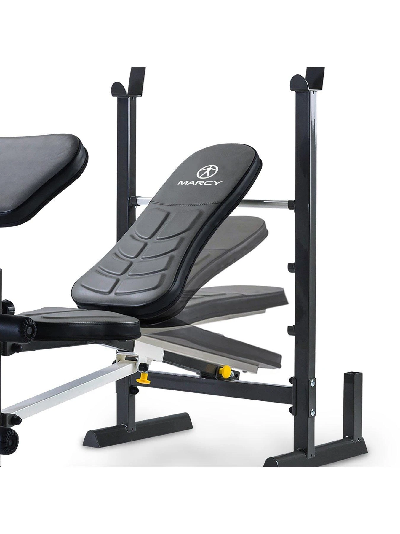 Compact yet tough, the Marcy folding standard weights bench and rack can pack away to half its length!