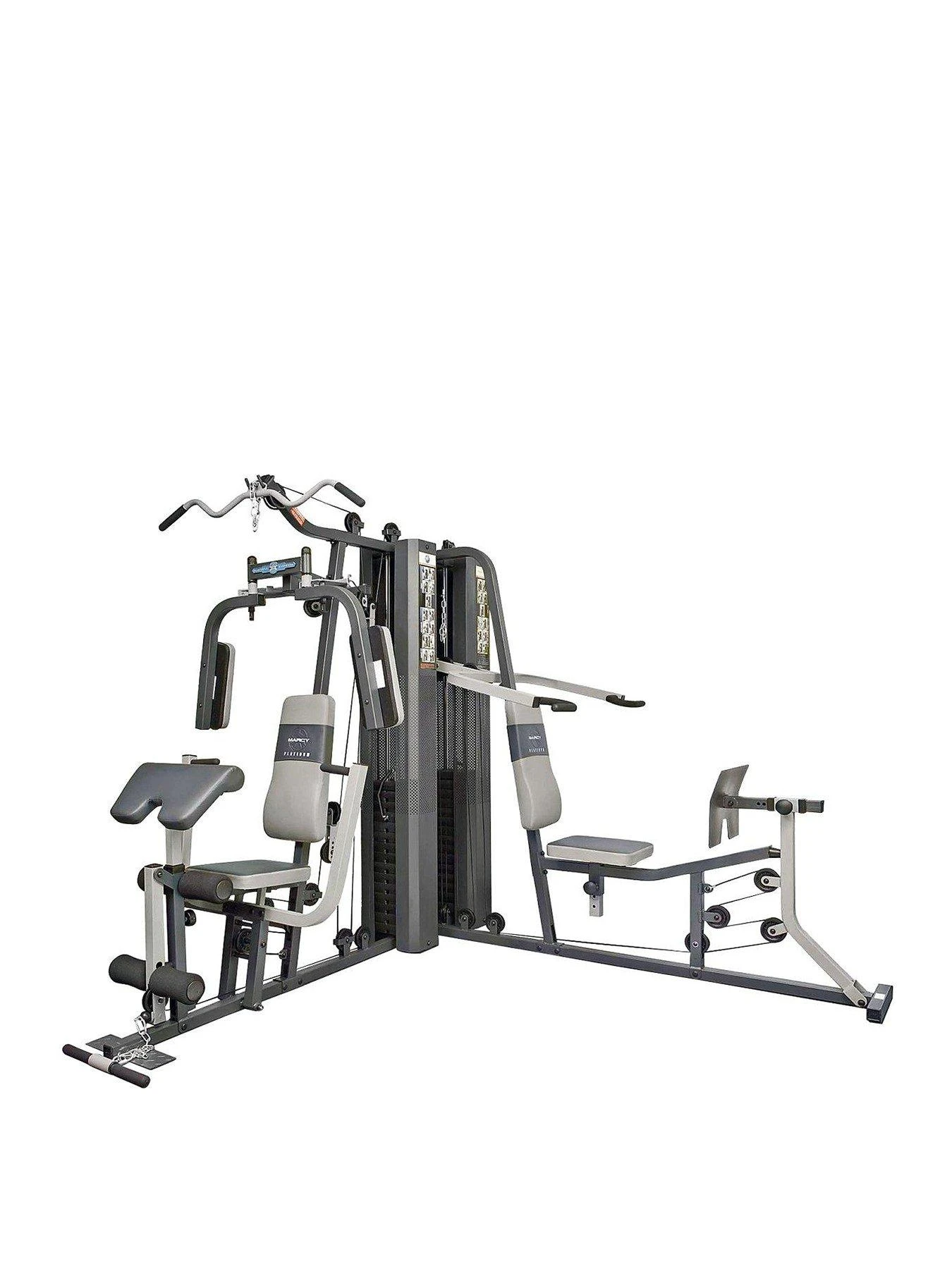 One of the workout stations is packed with an independent chest press and pec dec, high and low pulley stations, leg developer and an arm curl pad whilst the other features an adjustable leg press.