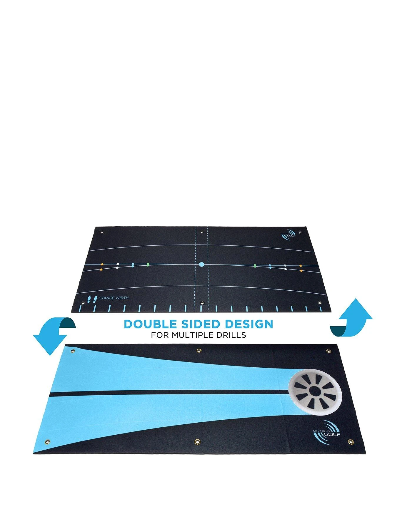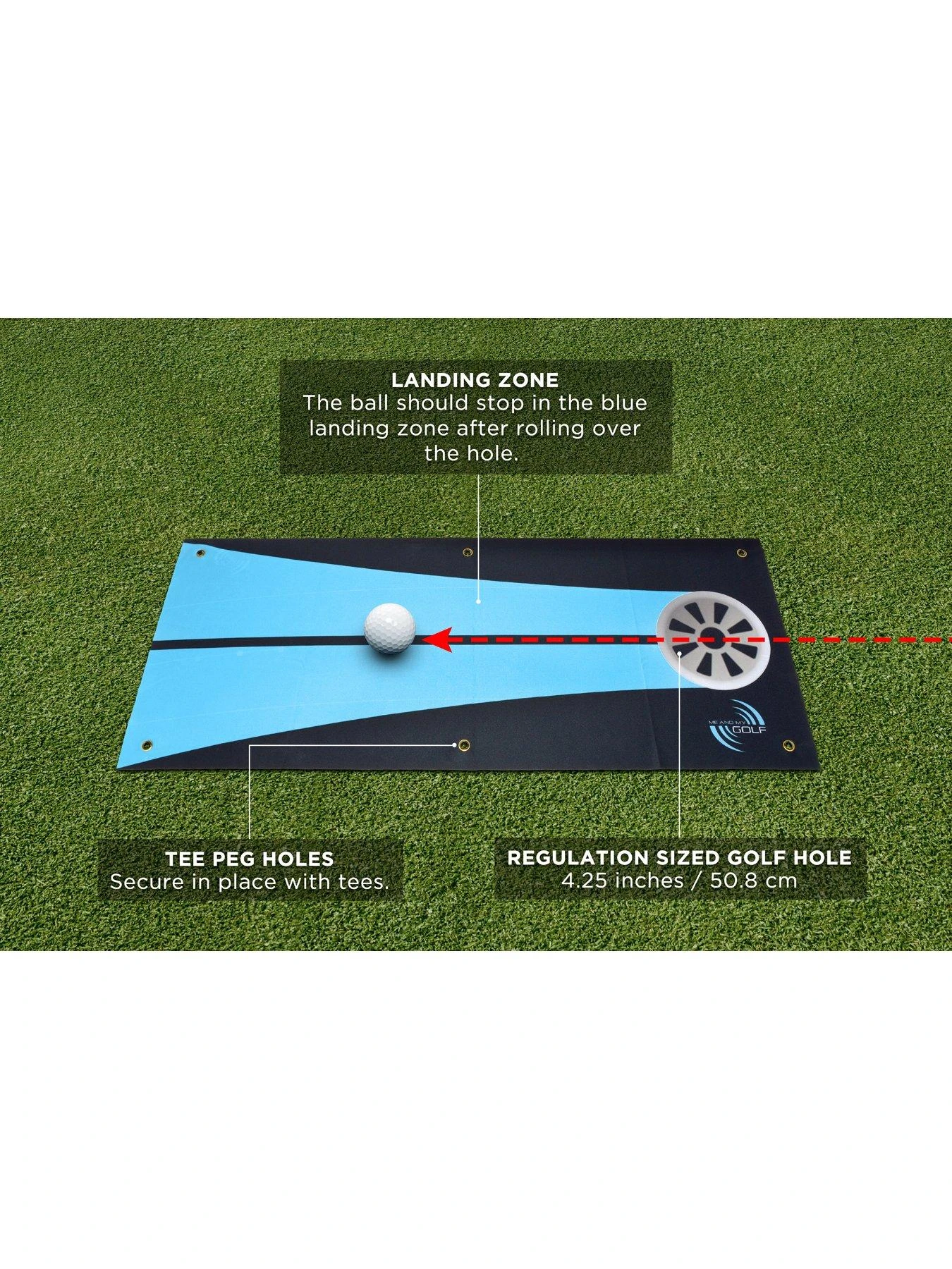 Double sided mimicking a real hole on one side or practice your stroke on the other side.