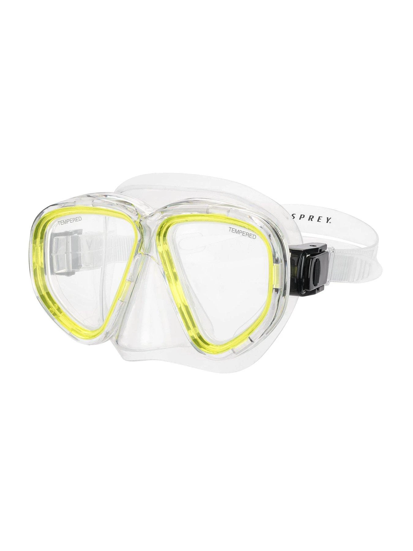 Explore beneath the surface with the Osprey Mask & Snorkel Set in yellow. Providing great visibility underwater thanks to the 4mm tempered glass dual lens design, this snorkel set is perfect for swimming in the sea or having some fun in the pool. Including a silicon skirt edge and adjustable strap, the mask provides an airtight and comfortable fit.The included snorkel can also clip neatly onto the side of the mask, so you can concentrate on exploring the underwater world!