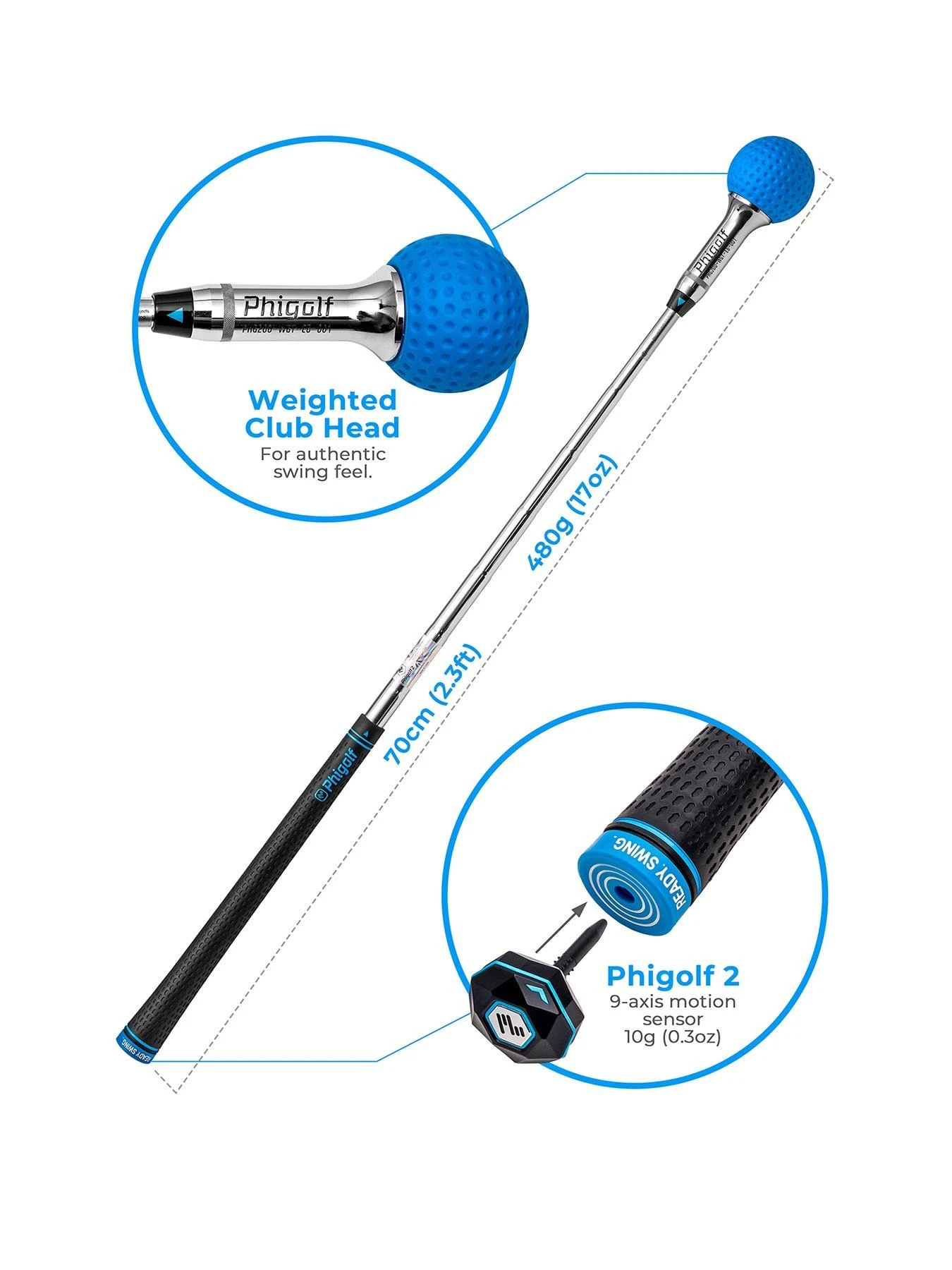 Phigolf brings you the realistic feel of striking a golf ball by using a 9.8g light sensor. The sensor is designed with a reinforced stopper for better stability and durability. Pair the sensor with this device via Bluetooth and attach it to a swing stick or your own golf club, and you’re good to go.