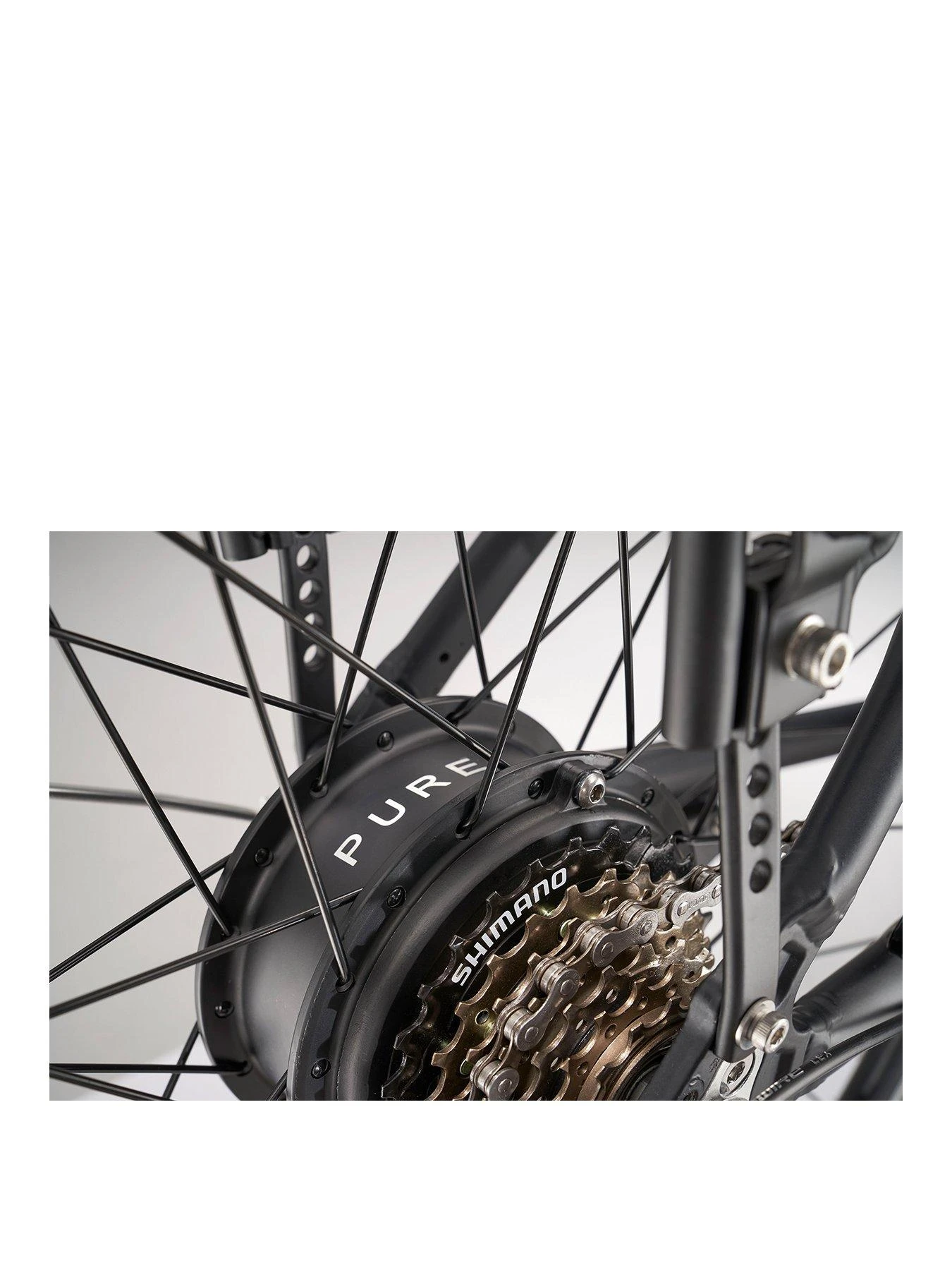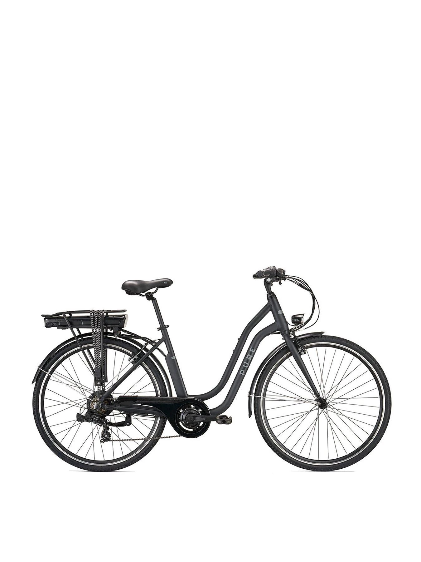 Every inch of the Pure Free City has been carefully curated to give you the most comfortable ride, every time. Powered by a 250W rear hub motor for strong pedal assistance, with a fitted rack battery that lets you ride 28 mile / 45km assisted on one charge. Complete with a high-quality pannier rack, mud and chain guards, integrated lights and a kickstand – all built into a considered step-through unisex frame – it’s the last word in hybrid e-bike practicality. Ready for life’s journeys – With a 313Wh capacity, rack-mounted battery, Pure Free City can deliver an assisted range of up to 28mi / 45km. Recharging is easy, with the battery left in place or removed for added security when parked up, fully charging in 6 hours from empty, and up to 80% in just 4.5 hours. Powered for an effortless ride – Pure Free City provides effortless pedal assistance right when you need it most. The 250W motor is the most powerful fitted to a Pure e-bike to date, so is perfect for stop-start city roads, for accelerating up hills and when the pannier rack is loaded up. Fully accessorised – Pure Free City comes fitted with everything you need. Mud and chain guards keep you clean, a sturdy kickstand makes for easy parking, while a pannier rack adds the ability to fit luggage bags and built-in lights boost visibility. See and be seen – Pure Free City features built-in powerful LED lights. Easily switched on and off via the handlebar and powered by the on-board battery, the front light shines a path ahead, while the rear light improves rearward visibility to other road users.