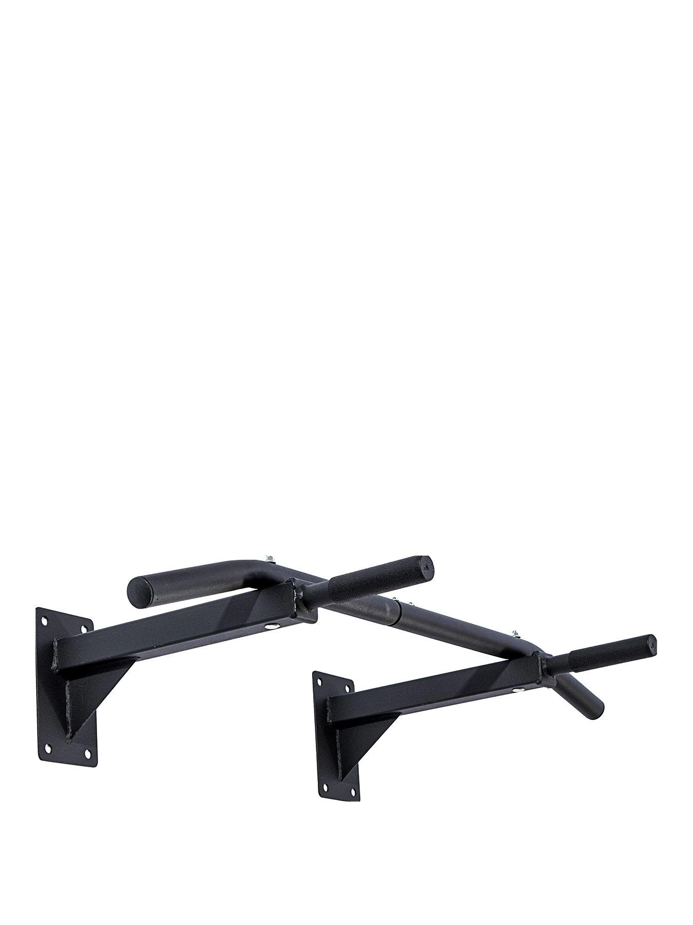 This Pure2Improve Chin-up bar features a horizontal bar that extends into a handle on each side, along with parallel bars going forward. It offers multiple pull-up and chin-up grip variations for a balanced workout across the different muscle groups in your back and arms.