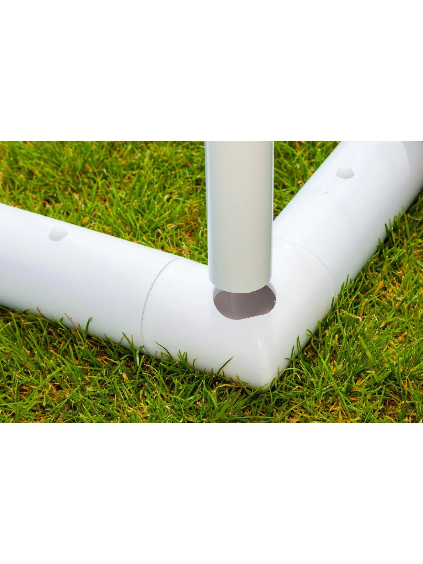 - A precise locking system throughout the goal adds strength to the frame, this goal will easily tolerate shots from an adult.