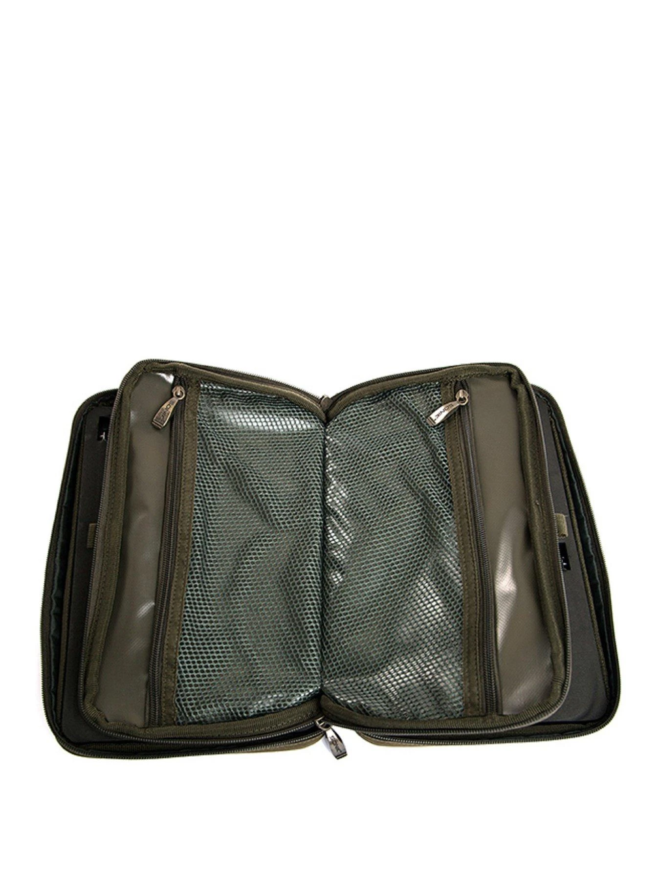 Designed with a tough outer skin of HD 600D PVC Backed SK-TEK Camo material, this fantastic wallet also boasts stiffened side plates to help keep rigs taught. The internal pouch has mesh pouches to keep mono and braid separated, while the double Sonik Zippers throughout allow easy access.