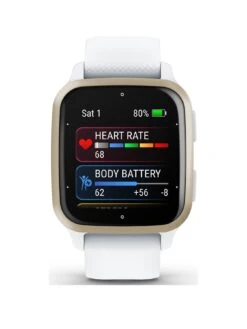 Garmin Venu Sq GPS Smartwatch With All-day Health Monitoring – Light Gold & White Band