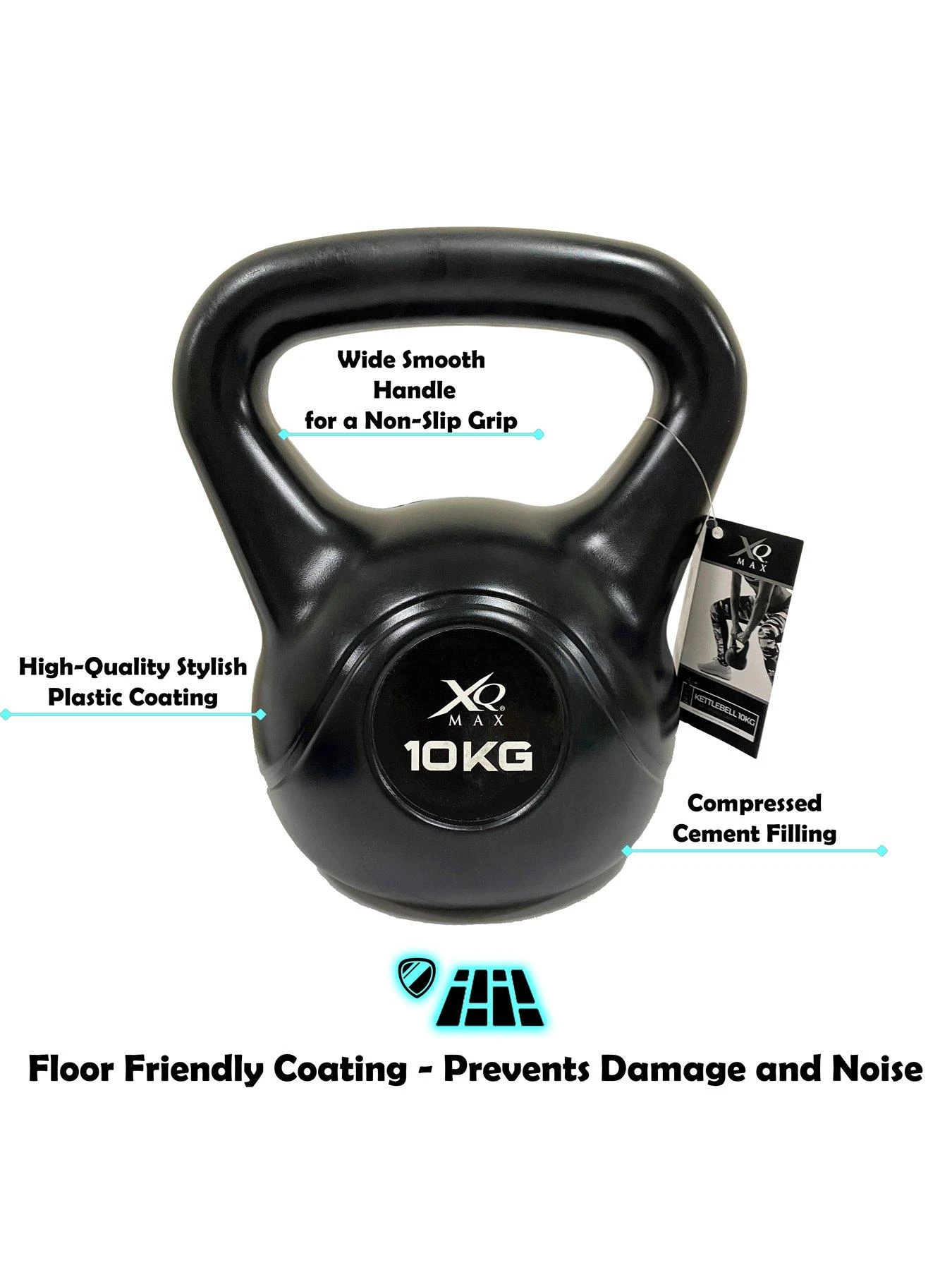The XQ Max Kettlebell has a high-quality and stylish coating with a compressed cement filling. The coating is also ‘floor friendly’ meaning that the Kettlebell will not damage your flooring and ensures that it can be put down quietly. The surface of the Kettlebell is easily cleaned with a wipe, and the 10kg weight ensures that you will always feel the burn!